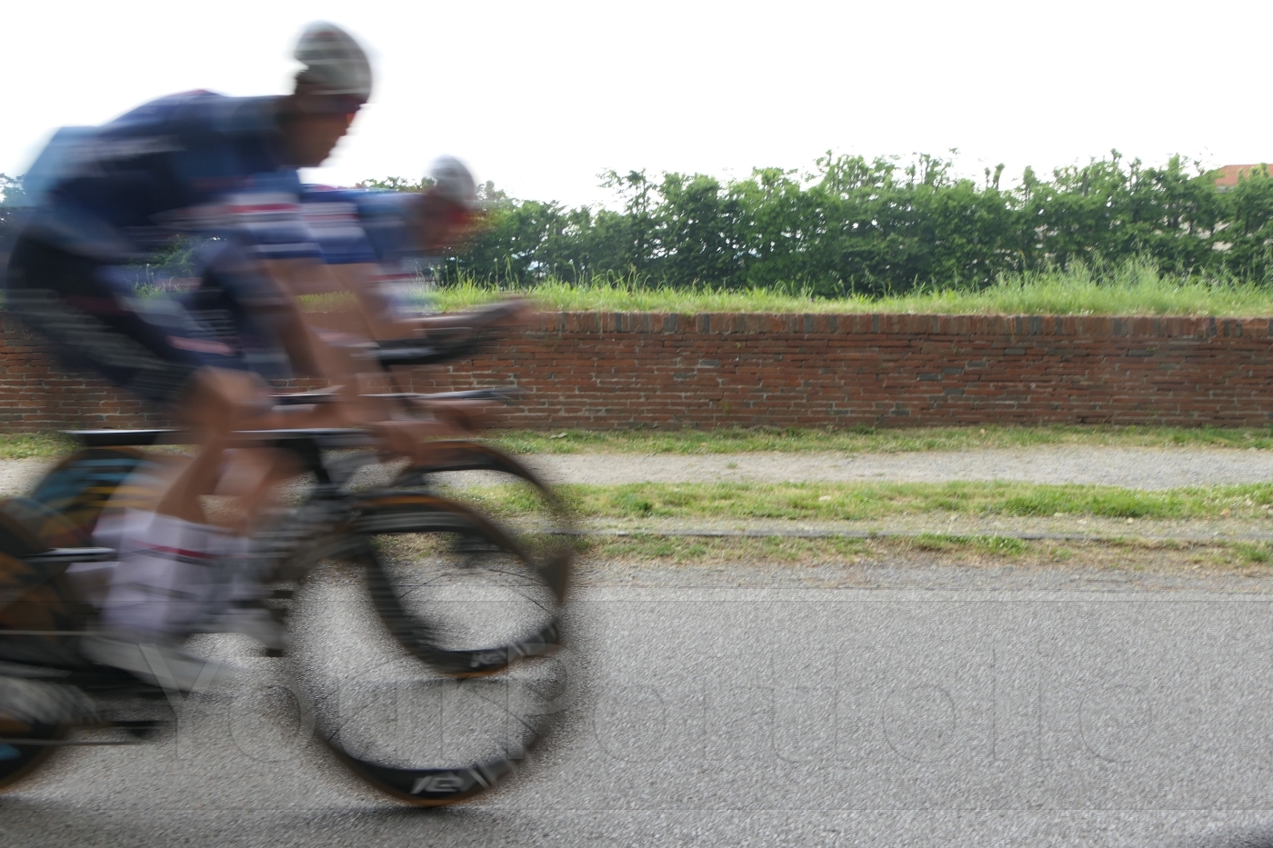 Stage 10 of the 2025 Giro d'Italia was an Individual Time Trial, where the riders race individually against the clock. With the race in the afternoon, many riders took the opportunity to do a recon of the course in the morning. For this image I deliberately used a relatively slow shutter speed (1/80th of a second) to try to capture an impression of the speed of the riders, even though this pair we re taking a relatively relaxed approach to their reconnaissance ride.