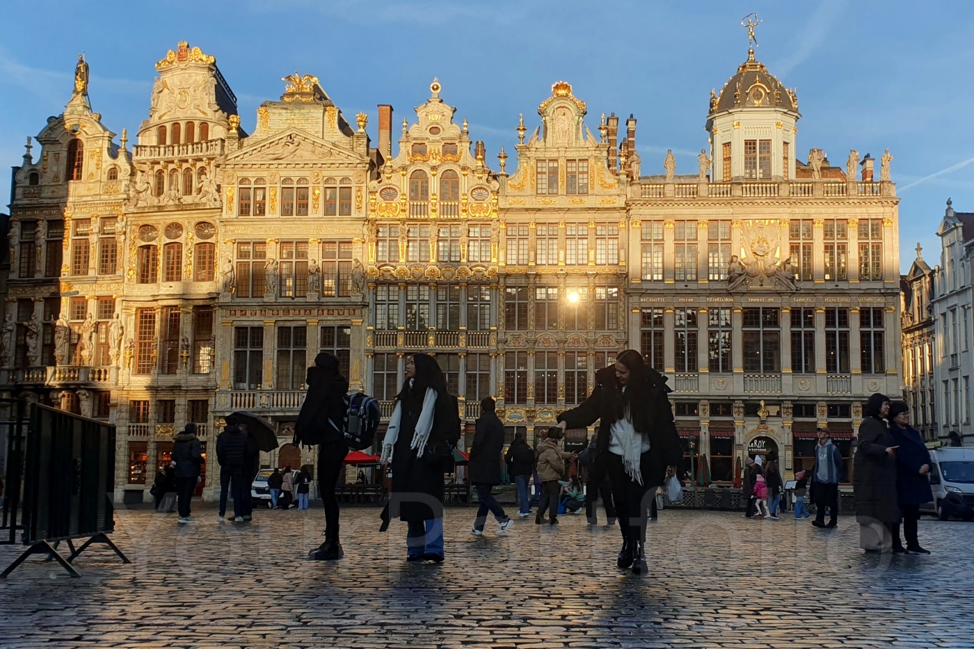 The six buildings on the west side of the Grand-Place (or Grote Markt in Flemish Dutch) are generally considered to be the most beautiful of the guildhalls which surround it. From left to right they are: