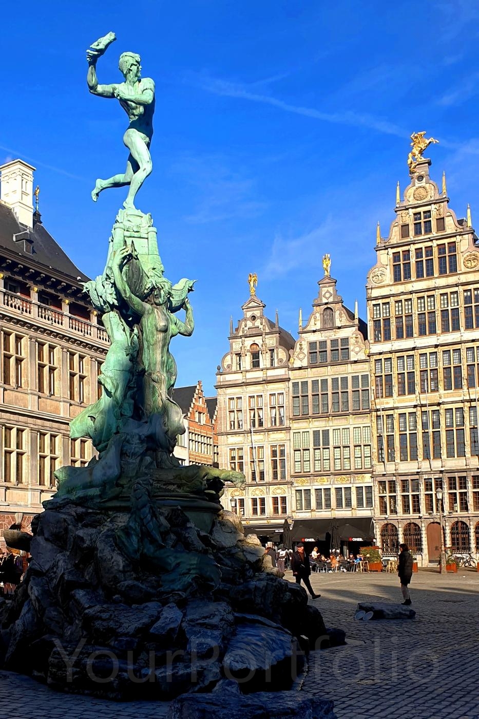 According to legend, the name Antwerp (Antwerpen in Dutch) comes from the Dutch “handwerpen” (‘hand-throwing’). The legend says that the giant Antigoon lived near the River Scheldt and demanded a toll from passing boatmen. If anyone refused to pay the giant punished them by cutting off their hand and throwing it in the river. Finally a young hero named Silvius Brabo succeeded in killing the giant, and cut off his dead hand and threw it in the river.