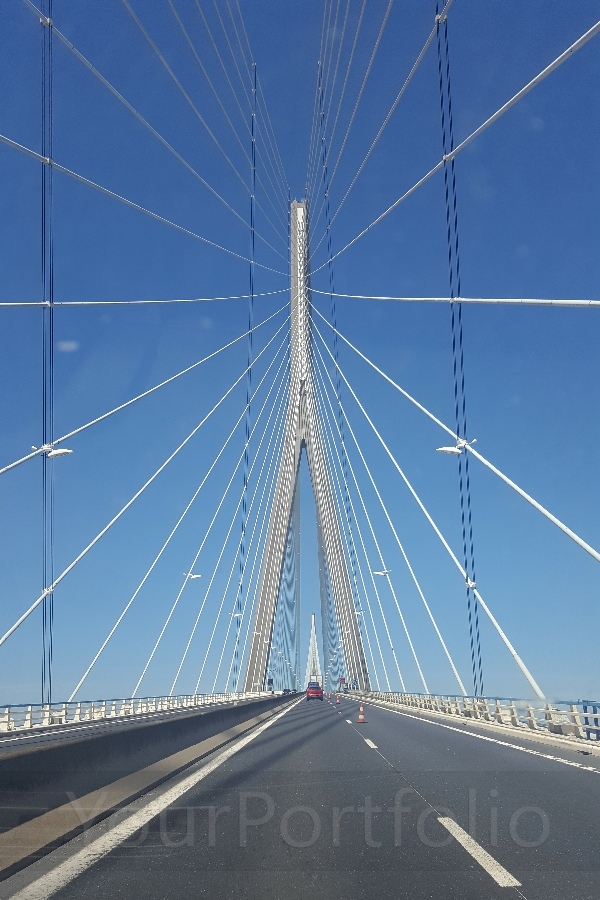 Le Pont de Normandie crosses the River Seine near its mouth, connecting the ports of Honfleur on the south bank and Le Havre on the north bank. When it opened in January 1995 it was the world's longest cable-stayed bridge.